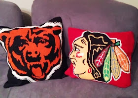 Petra just sent me this picture of the pillow she made with my Chicago Blackhawks chart. She says her mother-in-law is also going to use it to make a cross stitch pillow. Petra cross stitched the Black Hawks pillow using a slightly smaller version of the Blackhawks chart. She used this chart to make the Bears pillow.